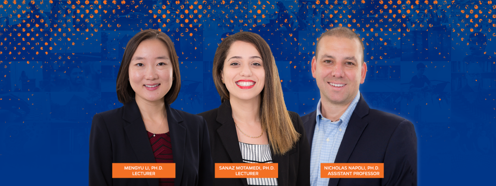 November 19, 2019The Department of Industrial & Systems Engineering (ISE) continues to expand as it welcomes three new faculty members. Mengyu Li, Ph.D., Sanaz Motamedi, Ph.D., and Nick Napoli, Ph.D., joined the department in Fall 2019. Mengyu Li, Ph.D.Lecturer Mengyu Li, Ph.D., joins the ISE department as a lecturer having graduated from Dalhousie University in Nova Scotia, […]