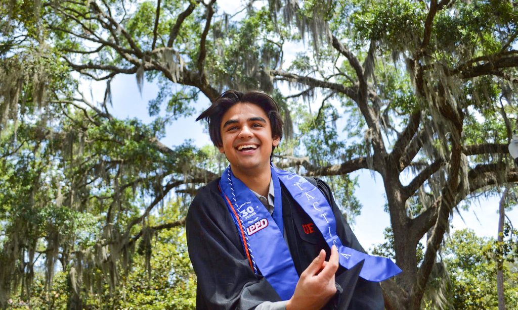 June 6, 2025When University of Florida graduate Andres Espinosa isn’t optimizing supply chains, diving into transportation research or fine-tuning an artificial intelligence model to compose video game music, he often can be found on the pickleball court or strumming his guitar.
